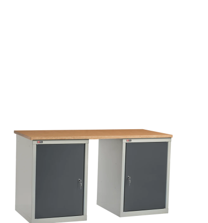Комплектация: Верстак слесарный на двух тумбах. Тумба ВЛ-010 с дверцей (укомплектована 2 полками)